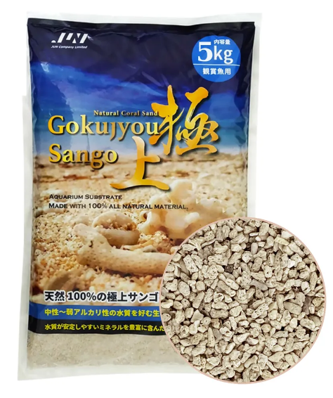 Jun Firması’nın geliştirdiği ve Filipinler kıyılarından elde edilen doğal mercan parçacıklarıyla üretilen Gokujyou Sango, deniz akvaryumları için özel olarak formüle edilmiş, yüksek saflıkta bir doğal mercan kumudur.
