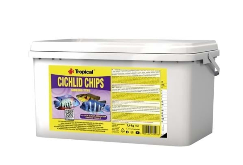 Cichlid Chips, çiklitler için tasarlanmış, yüksek protein içerikli, cips formunda renk arttırıcı bir yemdir.